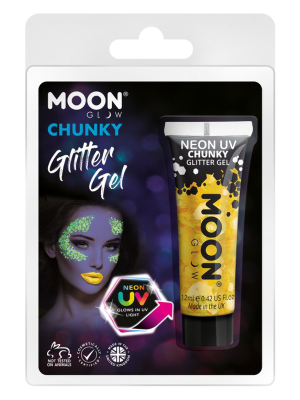 Moon Glow – Neon UV Chunky Glitter Gel, Golden 12ml Clamshell